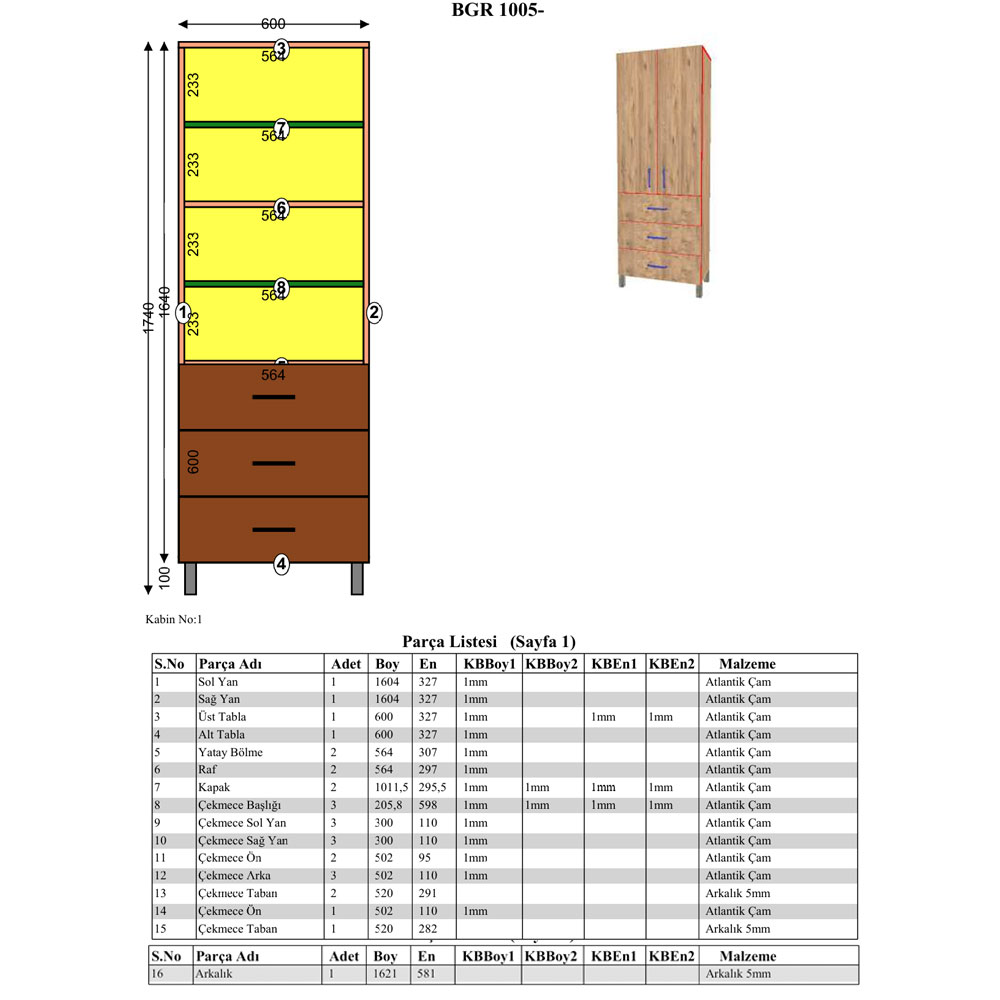 BGR 1005 çok amaçlı dolap hangi özelliklere sahiptir?