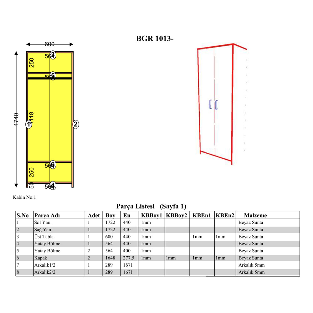 BGR 1013 2 kapaklı gardırop hangi özelliklere sahiptir?