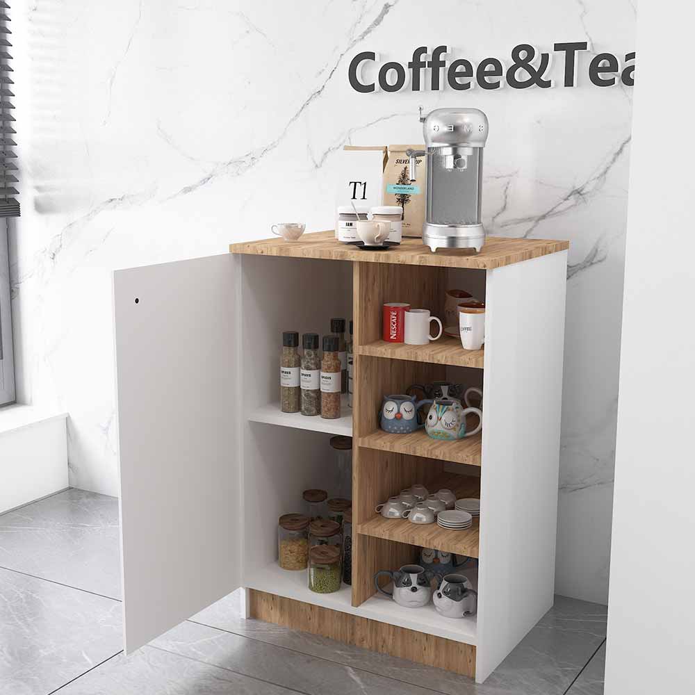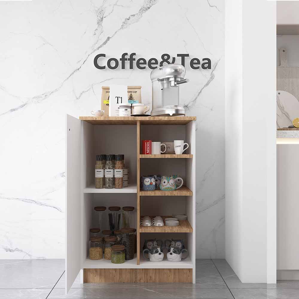 Tekli kahve köşesi modelleri, dar veya sınırlı kullanım alanı olan mutfak, balkon ya da ofis köşelerinde oldukça işlevseldir. BGR kahve köşesi 1814 modeli, kompakt ölçüleri sayesinde az yer kaplar ve düzen sağlar. Üst tablası kahve ve çay hazırlama alanı olarak kullanılırken, alt raflı bölmeler bardak, kapsül, çay-kahve kutuları için idealdir. Küçük alanlarda hem estetik hem işlevsellik sunar.