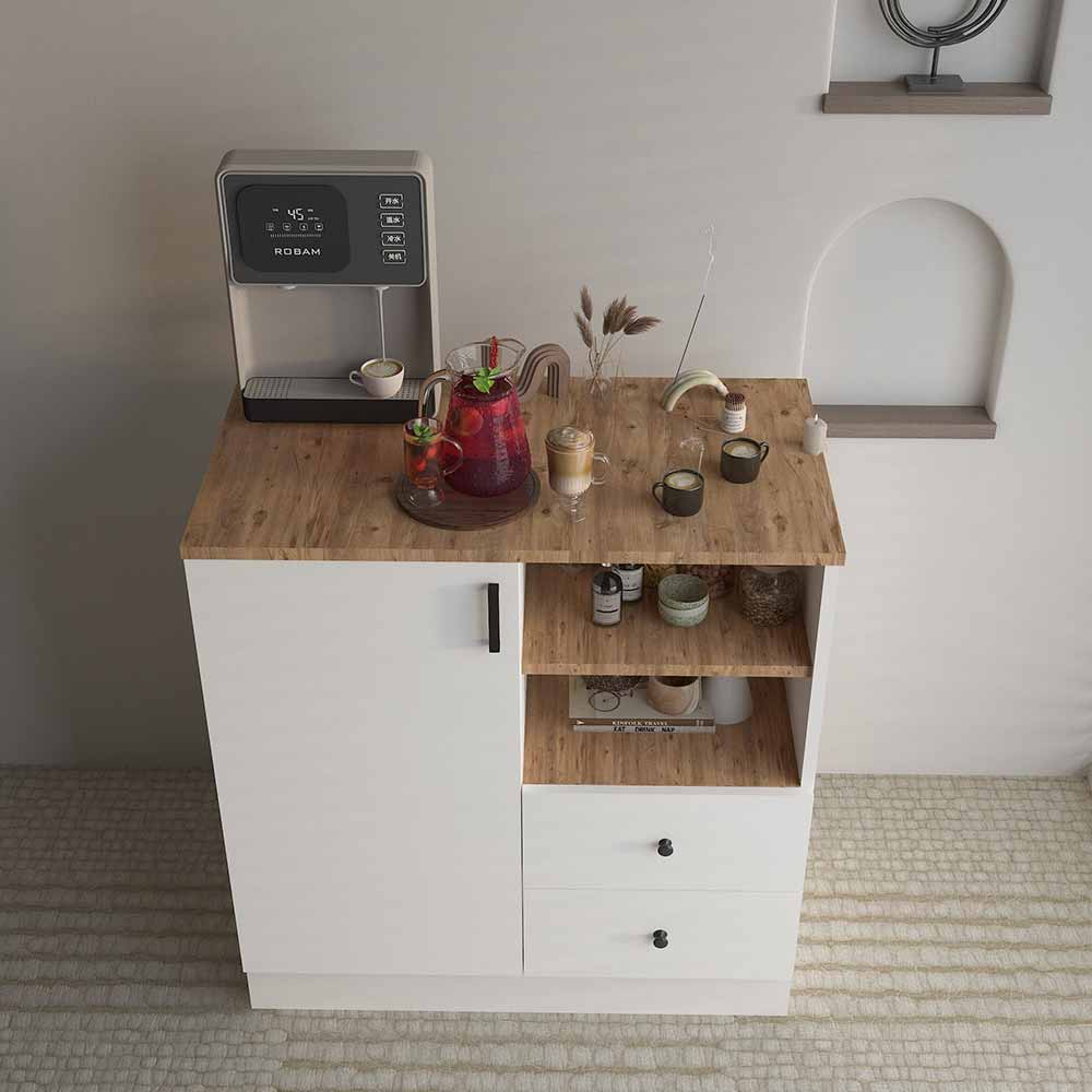 Çok amaçlı dolap olarak tasarlanan BGR 2025, sadece kahve köşesi değil; mutfakta yardımcı dolap, salonda mini bar, ofiste servis köşesi ya da balkonda şık bir sunum alanı olarak kullanılabilir. Kompakt ölçüleri sayesinde alan tasarrufu sağlar, düz yüzeyli sade yapısı ile her ortama uyum sağlar.