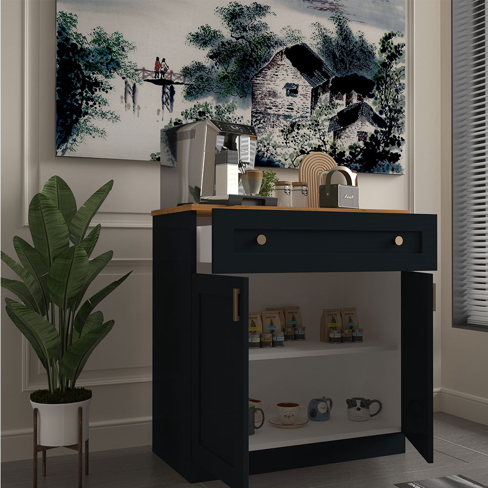 Fonksiyonel, şık ve kompakt bir çözüm arayan kullanıcılar için bu kahve köşesi oldukça uygundur. Lacivert kahve köşesi tasarımı, mutfakta veya yaşam alanlarında modern bir atmosfer yaratır. MDF ve membran kaplama kombinasyonu sayesinde uzun süreli ve sağlam kullanım sunar. Mutfak kahve dolabı arayanlar için hem depolama hem de kahve hazırlama alanı sağlar. Kompakt ölçüleri ile alan tasarrufu sunarken, çekmece ve raf detayları ile eşyalarınızı düzenli tutar. Hem evde hem ofiste kullanılabilecek pratik ve estetik bir çözümdür.