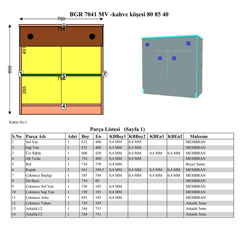 Bu kahve köşesi, gövde ve kapaklarında MDF üzeri kobalt mavi membran kaplama ile üretilmiştir. Bu malzeme yüzeyi dayanıklı ve çizilmelere karşı dirençlidir. Modern mobilya üretiminde sıklıkla tercih edilen membran kaplama, hem görsel kalite hem de uzun ömürlü kullanım sağlar. Raf ve çekmece içleri ise melamin kaplı yonga levhadan yapılmıştır; bu da kolay temizlenebilirlik ve sağlamlık sunar. Lacivert kahve köşesi tasarımıyla dikkat çeken bu model, malzeme kalitesi açısından hem sağlam hem de şık bir tercihtir.