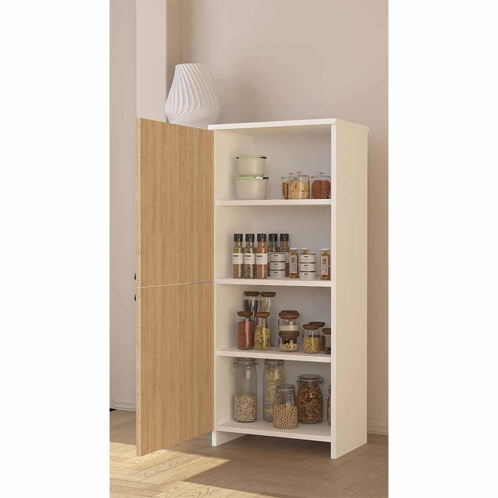 BGR kışlık erzak dolabı, kuru bakliyat, konserve, reçel, turşu, kavanoz, temizlik malzemeleri gibi ürünleri uzun süre düzenli ve hijyenik şekilde saklamak için tasarlanmış fonksiyonel bir depolama çözümüdür. Beyaz erzak dolabı gövdesi, mekânlara ferah bir görünüm katarken; safir meşe dolap kapaklarıyla doğal ve sıcak bir dokunuş sunar. Geniş iç hacmi ve çok katlı raf sistemi ile kışlık hazırlıklarınızı, market alışverişlerinizi veya fazladan stokladığınız ürünleri sınıflandırarak depolayabilirsiniz.