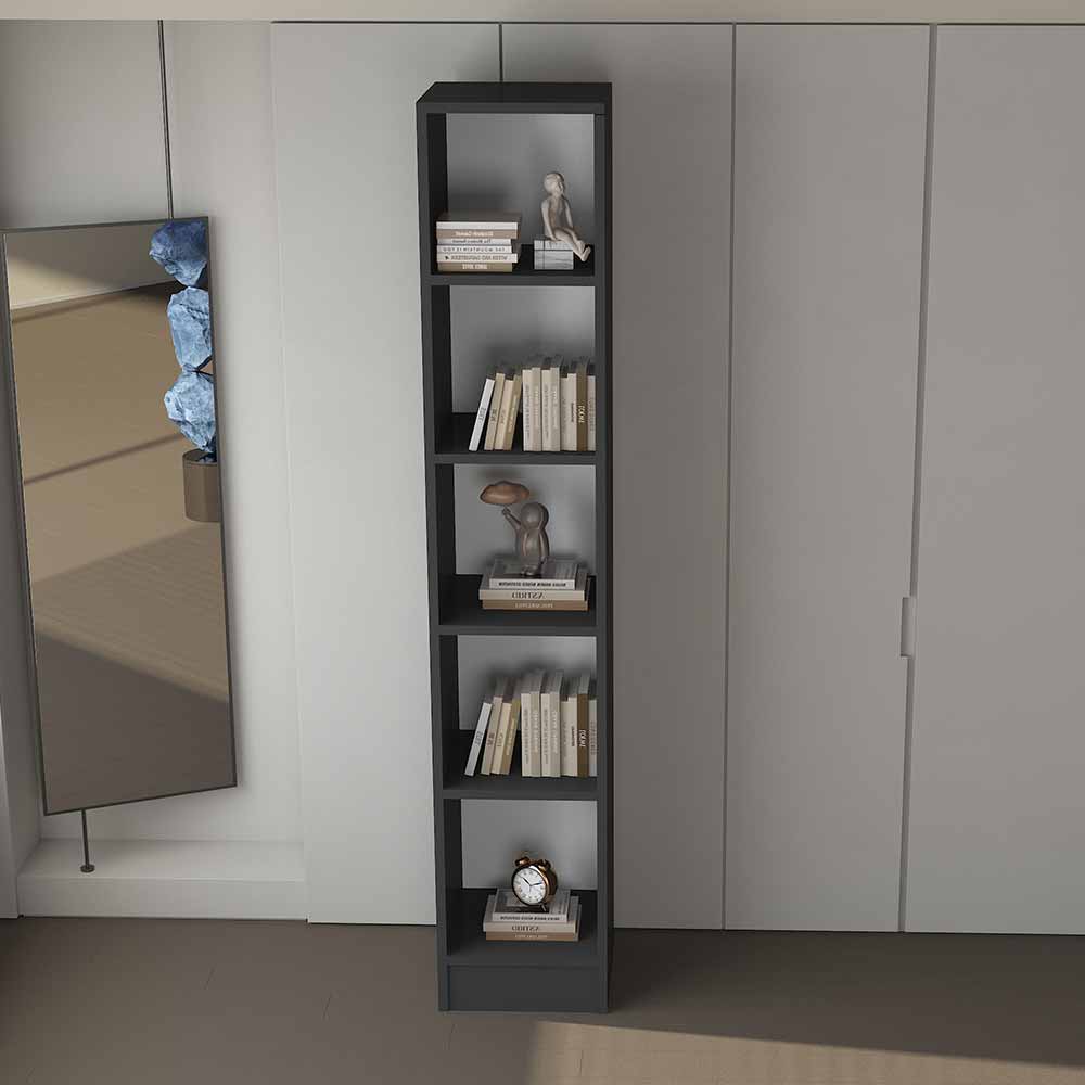 BGR 5 bölmeli kitaplık, kitap, dergi, klasör, dekoratif objeler veya çeşitli evrakların düzenli şekilde saklanmasını sağlayan çok amaçlı bir depolama çözümüdür. Antrasit kitaplık tasarımı, modern ve endüstriyel dekorasyon tarzlarına mükemmel uyum sağlar. 8055 kitaplık modeli, hem görsel açıdan şık hem de işlevsel olmasıyla yaşam ve çalışma alanlarında çok yönlü kullanım sunar.