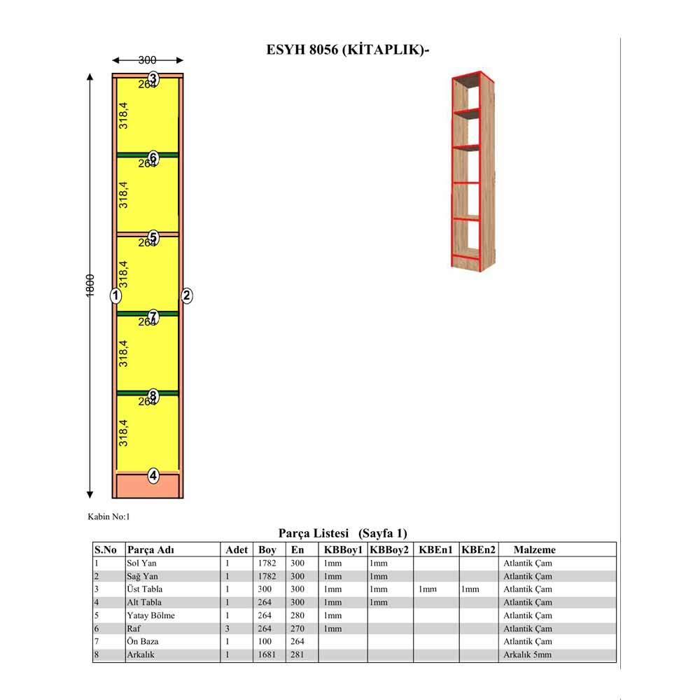 BGR 8056 kitaplık, suntalam veya MDF malzemeden üretilmiş olup, dayanıklı ve uzun ömürlü kullanım sunar. 5 adet rafı eşit aralıklarla yerleştirilmiştir. Ahşap desenli kitaplık olarak safir meşe kaplaması sayesinde doğal ve sıcak bir görünüm sağlar. Yüzeyi çizilmeye karşı dayanıklıdır ve kolay silinir. Dikey tasarımı ile dar alanlarda bile etkili depolama sağlar. Raf genişlikleri kitap, klasör, kutu gibi farklı boyuttaki eşyalar için idealdir. Duvara sabitlenebilir yapıdadır (bazı modellerde sabitleme aparatı bulunur).