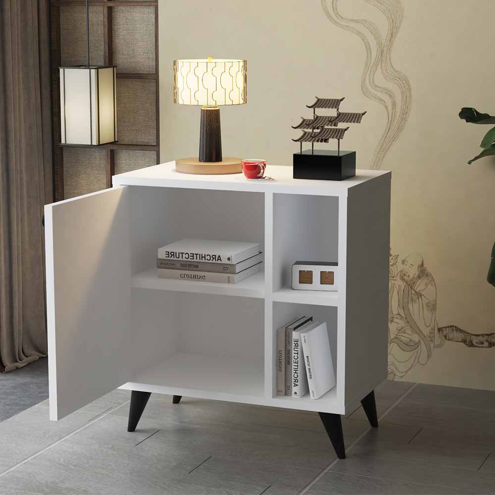 Komodin BGR 2510-B modeli, 42 cm yüksekliği, 46 cm genişliği ve 35 cm derinliğiyle kompakt yapıda ve işlevsel bir mobilya çözümüdür. Gövdesi beyaz melamin kaplı yonga levha malzemeden üretilmiştir. Üst yüzey telefon, kitap veya lamba için kullanılabilirken, alt çekmece kişisel eşyalar için saklama alanı sunar. Minimalist ve sade görünümü sayesinde her odada rahatlıkla kullanılabilir.
