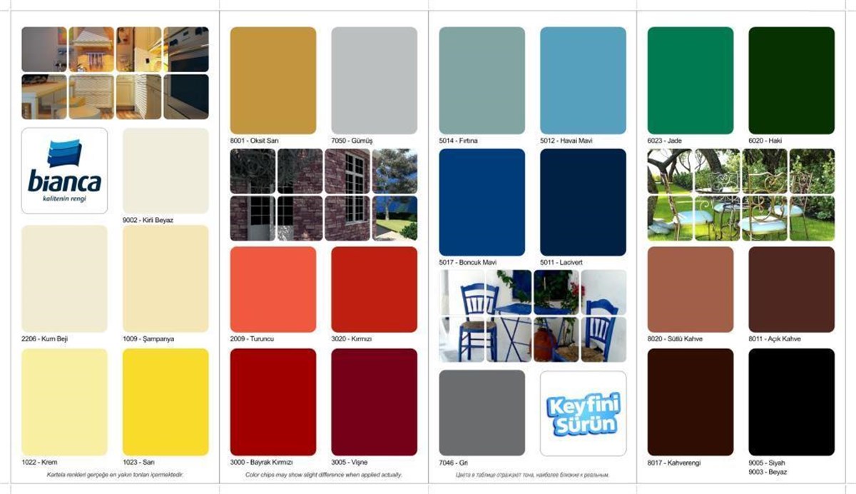 B) Metal Yüzeylerde: Astar olarak 1 kat Bianca Antipas uygulanır. Ardından 1 kat Bianca Sentetik Astar uygulaması yapılır. Yüzeye uygun astar uygulamasından sonra 12 saat beklenir. Fırça veya rulo ile katlar arasında 24 saat bekleyerek 2 kat Bianca Import Sentetik boya uygulaması yapılır.