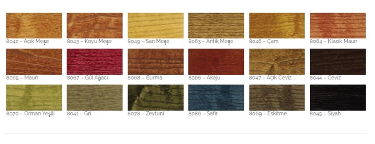 Alkid reçine esaslı, tek komponentli, transparan, yüksek penetrasyon gücüne sahip, dekoratif renkli vernikli ahşap koruyucudur.