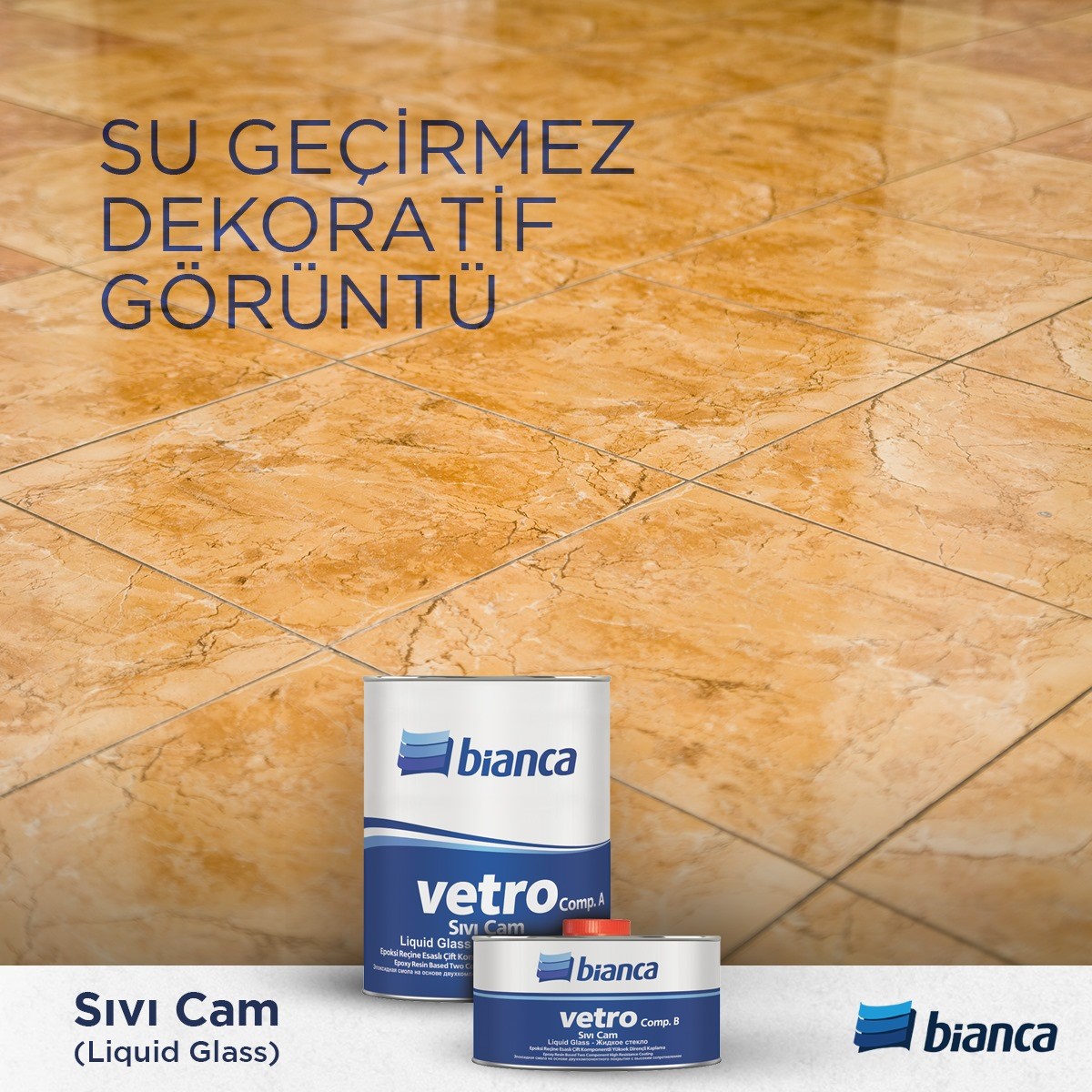 Bianca Vetro – Sıvı Cam uygulaması yapılacak yüzeyler; her türlü kir, yağ ve tozdan, eski boya kalıntılarından arındırılmış temiz ve kuru olmalıdır. İki bileşen belirlenen oranlarda karıştırılmalı ve homojen hale getirildikten sonra uygulamaya geçilmelidir. Fırça, rulo ya da püskürtme ile uygulanır. Uygulama sırasında yüzey ve ortam sıcaklığının en az +5°C ve en çok +30°C arasında olmasına dikkat edilmelidir. Uygulama ortamında aşırı rüzgar ve hava akımı olmamalıdır. Malzemenin kullanımı yaklaşık 50 dakikada yapılmalıdır. Daha iyi performans elde edebilmek için en az 2 kat uygulama yapılmalıdır. Katlar arası 1 gün beklenmelidir.