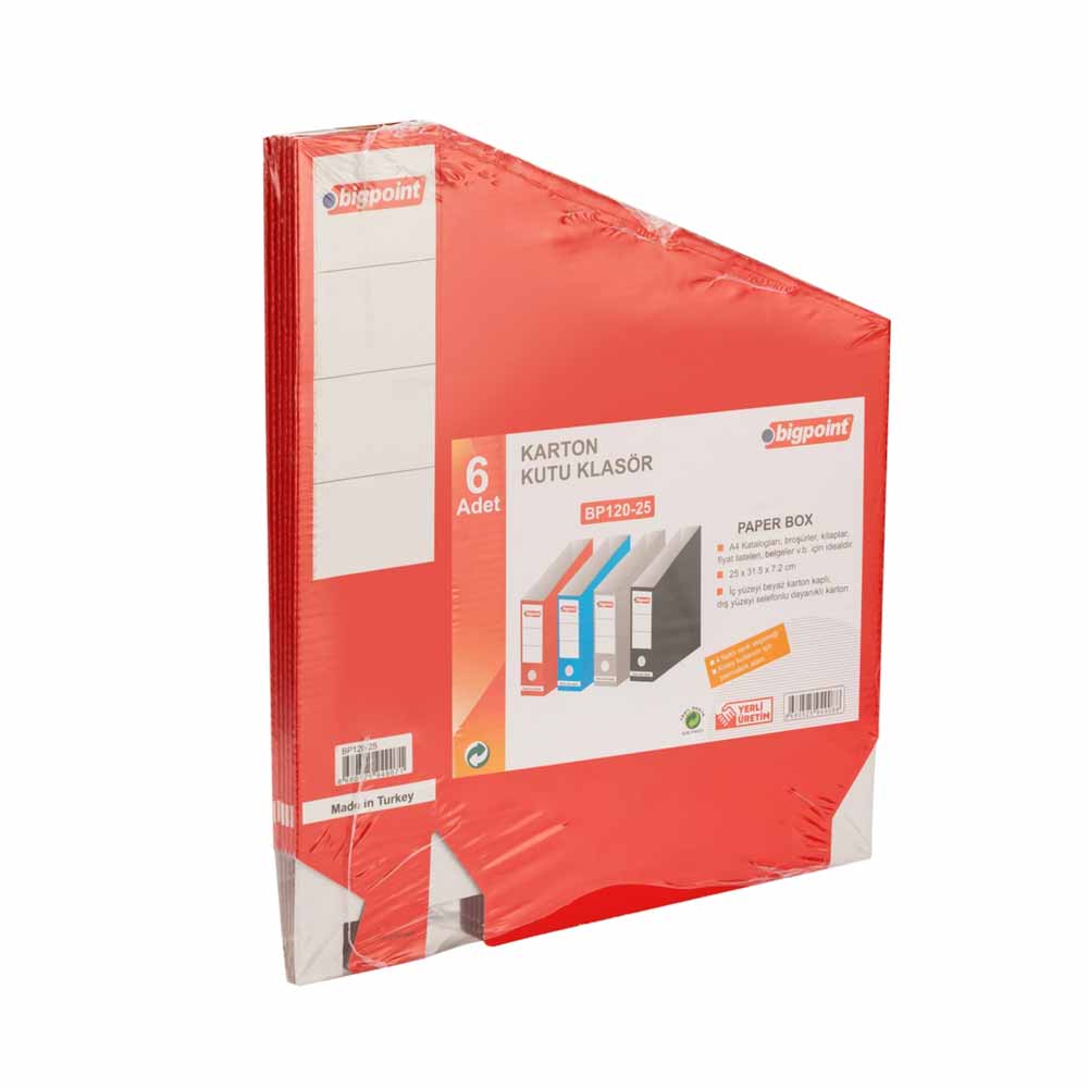 Bigpoint klasör, kaliteli karton malzemesi ve fonksiyonel tasarımıyla dikkat çeker. Bu ürün, kırmızı klasör renk seçeneğiyle hem estetik hem de işlevsellik sunar. Renkli arşivleme sistemine uyum sağlayarak farklı belge gruplarının kolayca ayırt edilmesine yardımcı olur. Kutu klasör yapısı sayesinde kalın belge dosyalarını rahatlıkla muhafaza eder. Üzerinde yer alan etiketleme alanı, klasör içeriğinin hızlı şekilde tanımlanmasını mümkün kılar. Hem görsel düzen hem de içerik yönetimi açısından avantaj sağlar.