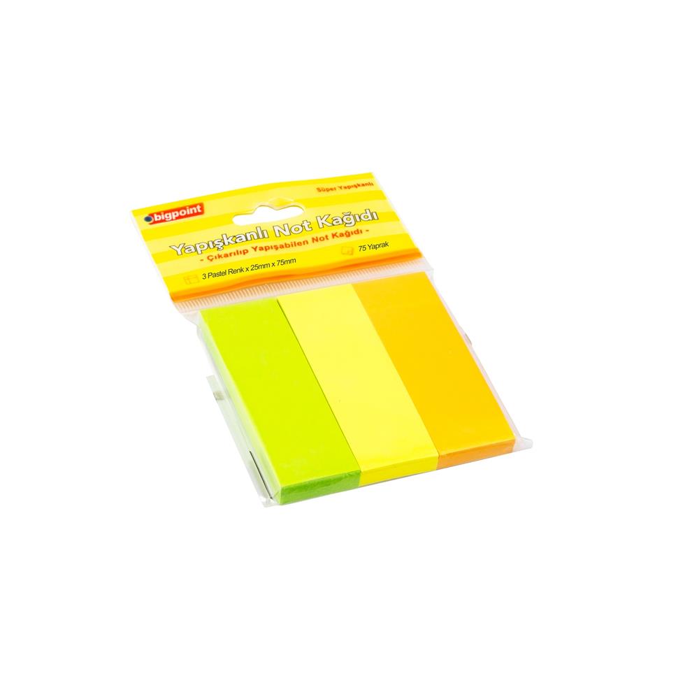 Bigpoint Yapışkanlı Not Kağıdı 3 Pastel Renk 25X75Mm