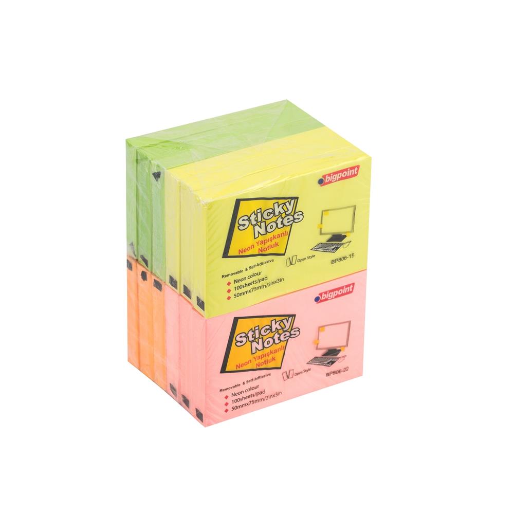 Bigpoint Yapışkanlı Not Kağıdı 75X50Mm Neon 4 Renk