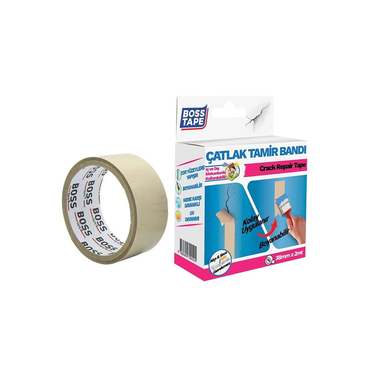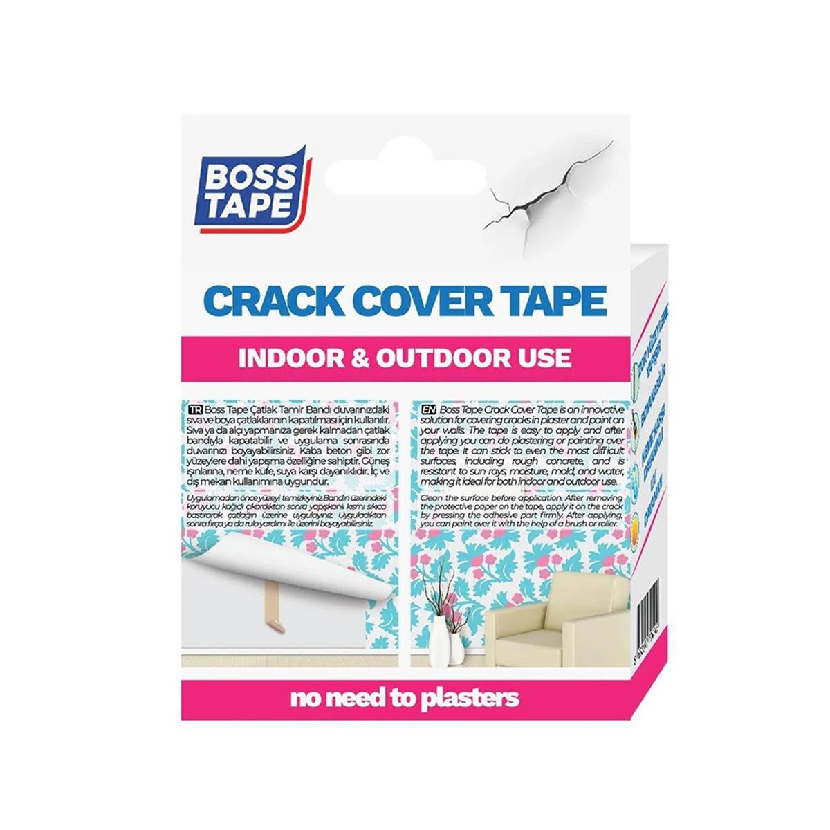 Boss Tape Çatlak Tamir Bandı Duvarınızdaki Sıva ve Boya Çatlaklarının Kapatılması İçin Kullanılır. Sıva Ya Da Alçı Yapmanıza Gerek Kalmadan Çatlak Bandıyla Kapatabilir ve Uygulama Sonrasında Duvarınızı Boyayabilirsiniz. Kaba Beton Gibi Zor Yüzeylere Dahi Yapışma Özelliğine Sahiptir. Güneş Işınlarına, Neme Küfe, Suya Karşı Dayanıklıdır. İç ve Dış Mekan Kullanımına Uygundur. Pervaz ve Pencere Aralarındaki Çatlakları Kapatabilirsiniz.
