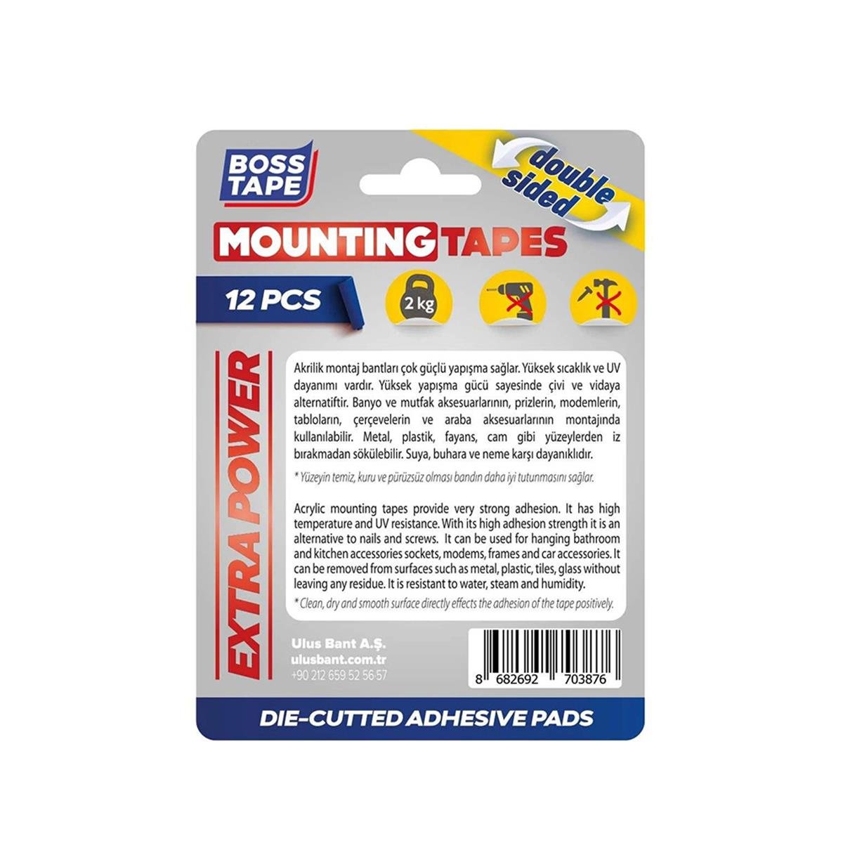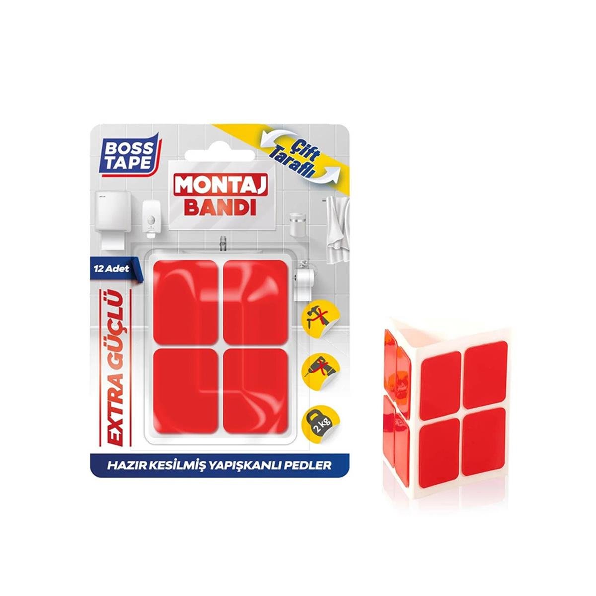 Boss Tape Hazır Kesilmiş 12 Adet Çift Taraflı Montaj Bandı