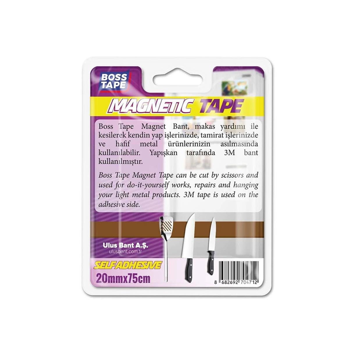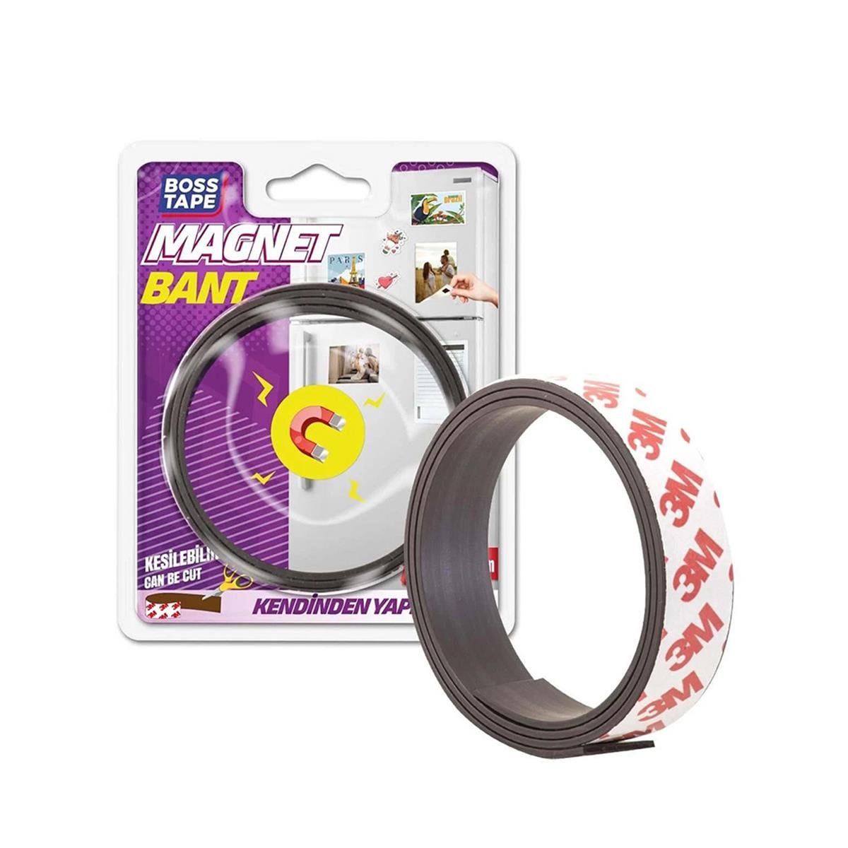 Boss Tape Magnet Bant, Makas Yardımı İle Kesilerek Kendin Yap İşlerinizde, Tamirat İşlerinizde, Maket Yapma, Hobi İşlerinizde ve Hafif Metal Ürünlerinizin Asılmasında Kullanılabilir.