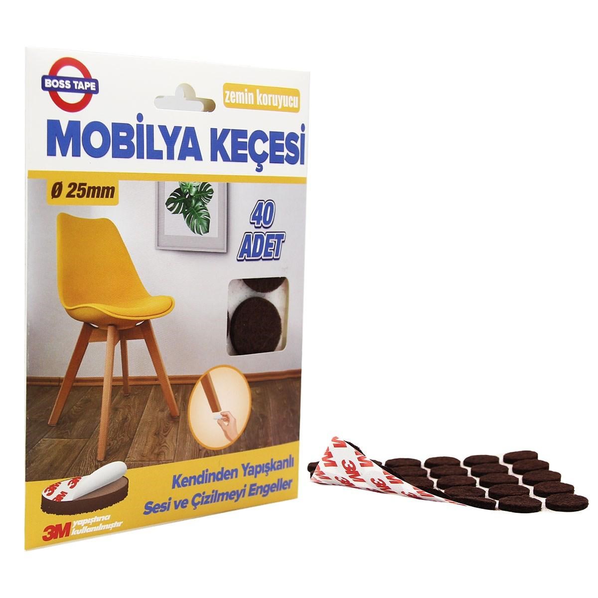 Boss Tape Yapışkanlı Mobilya Keçesi 25 mm Kahve Yuvarlak 40'li