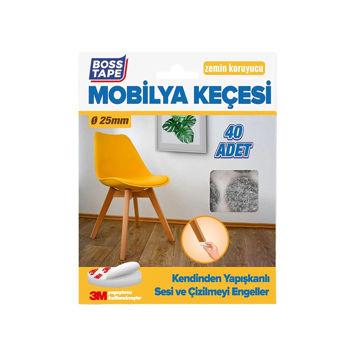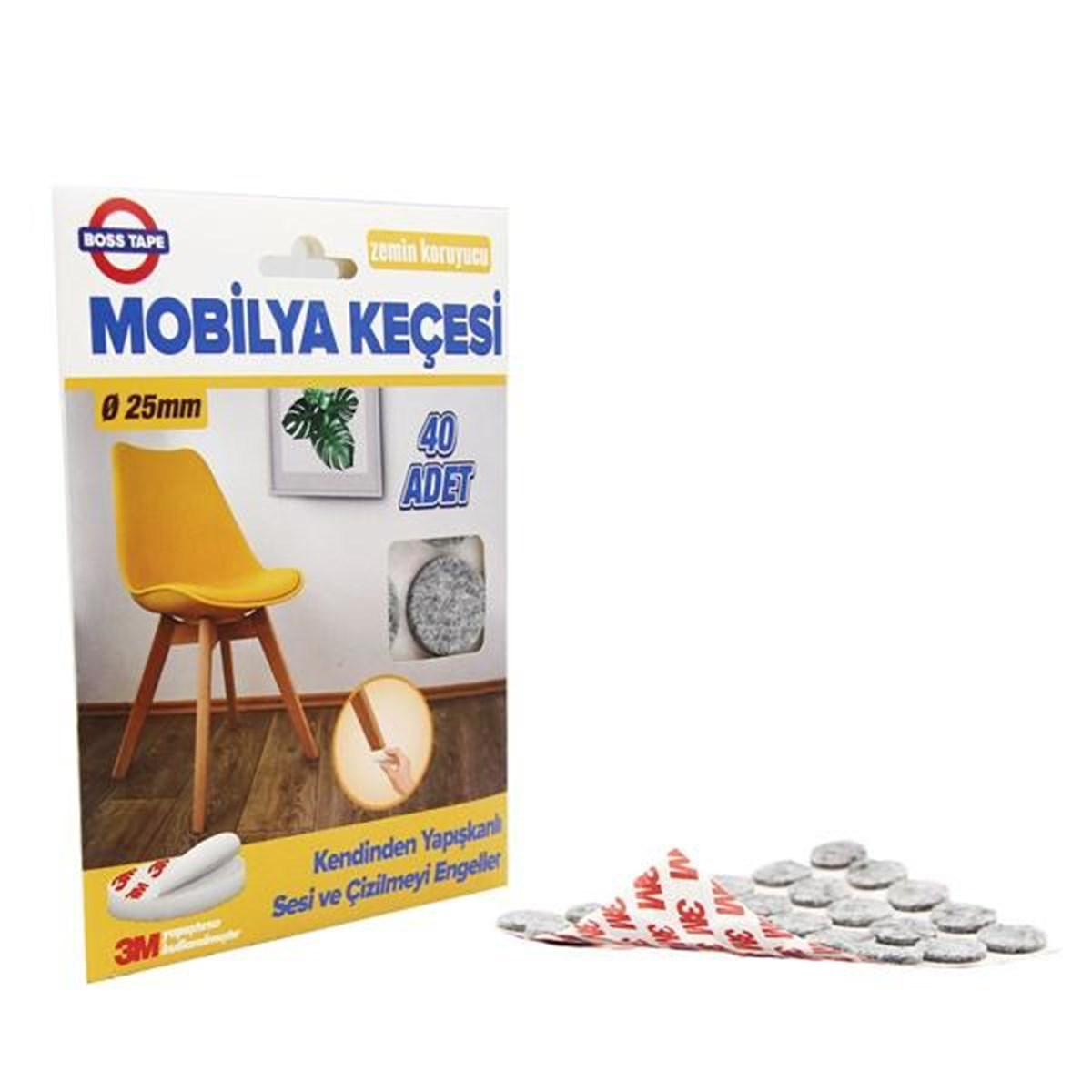 Boss Tape Yapışkanlı Mobilya Keçesi 25Mm Gri Yuvarlak 40'lı