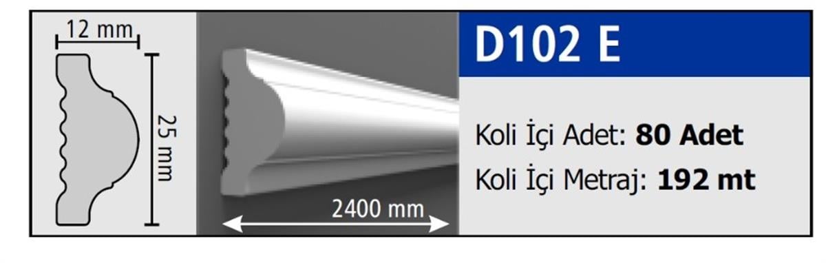 Boyanabilir Dekoratif Duvar Çıtası 2,5 cm (1 Boy 240 cm) D102 E