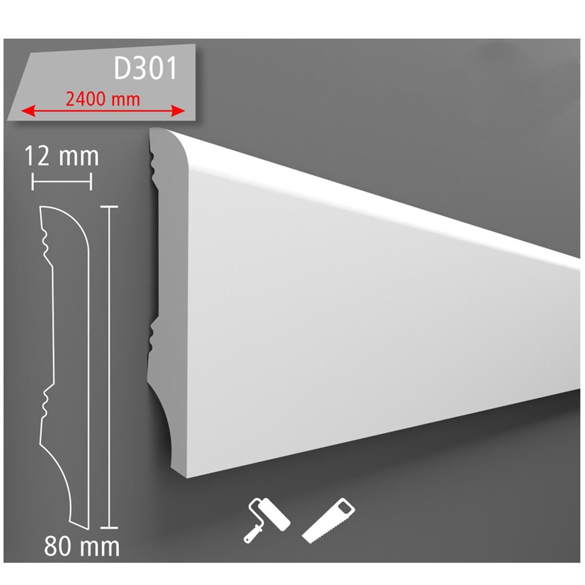 Boyanabilir Dekoratif Süpürgelik 8 cm (1 Boy 240 cm) D301