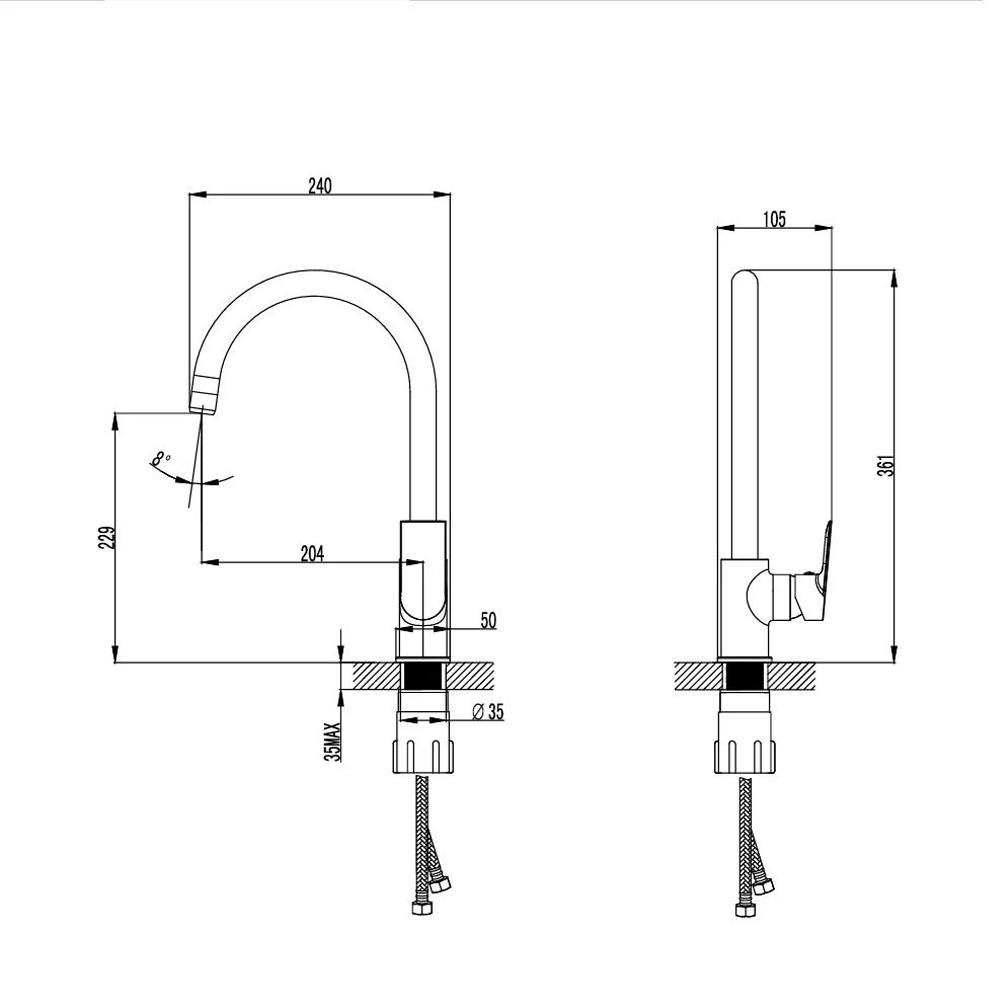 • Kullanıcı dostu 8° açılı musluk