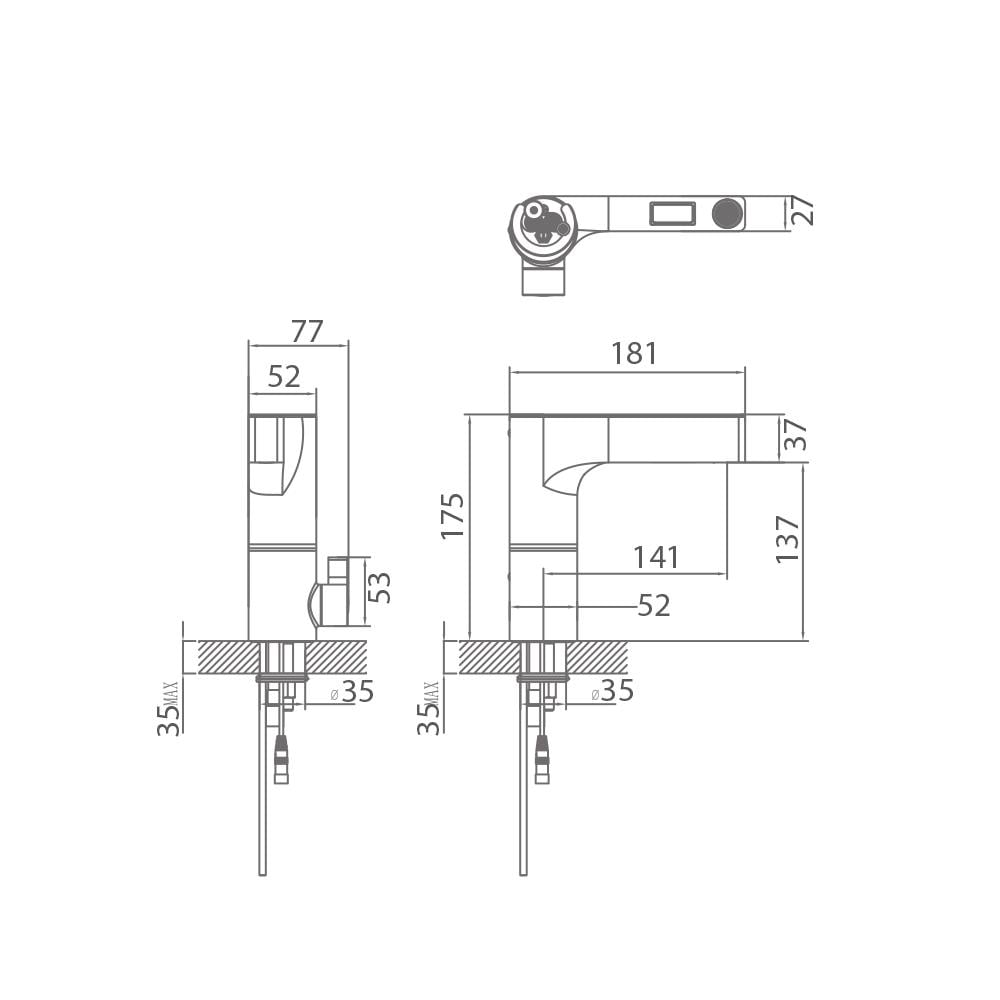 • 23 mm seramik kartuş ile ayarlanabilir sıcaklık akış hızı sınırlaması