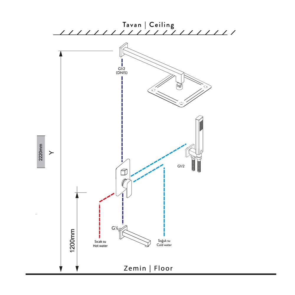 - 3 Yönlü Yönlendirici: Tepe duş, el duşu ve alt çıkış arasında kolay geçiş sağlar.