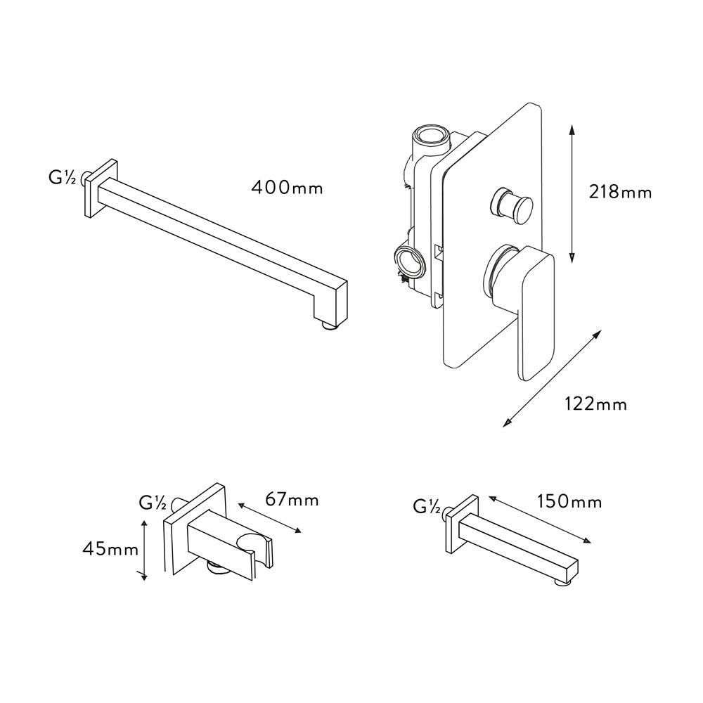 Crevo CRV-202 Nero 3 Yönlü Ankastre Duş Seti, modern banyolar için şıklığı ve fonksiyonelliği bir arada sunar. Siyah mat kaplama yüzeyi, zarif bir görünüm sağlarken dayanıklı malzemeleri sayesinde uzun yıllar güvenle kullanılabilir. Ankastre montaj sistemi, minimalist banyolar için kusursuz bir estetik sunar.