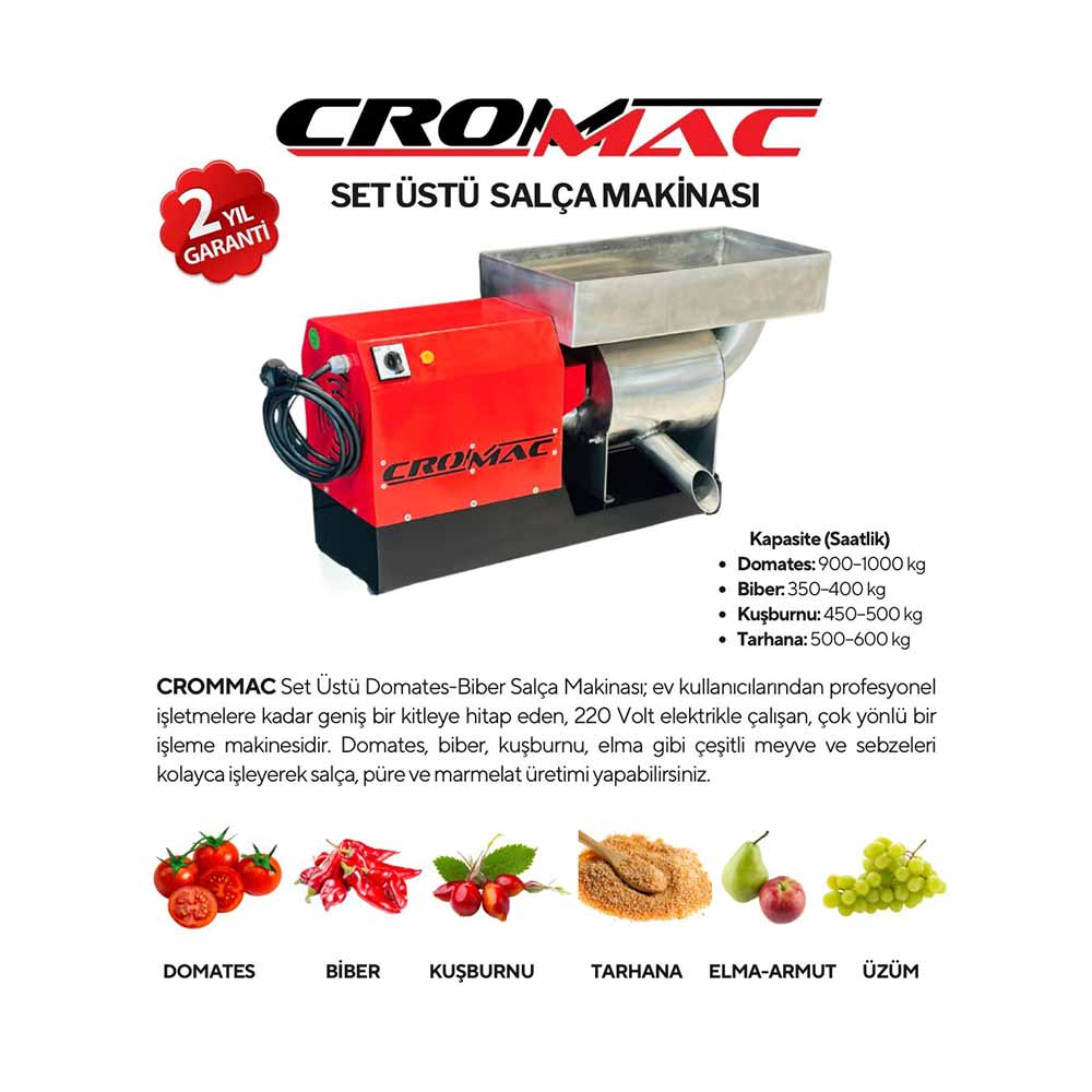 Crommac SM-01 salça makinesi, saatte yüksek miktarda ürün işleme kapasitesine sahiptir: