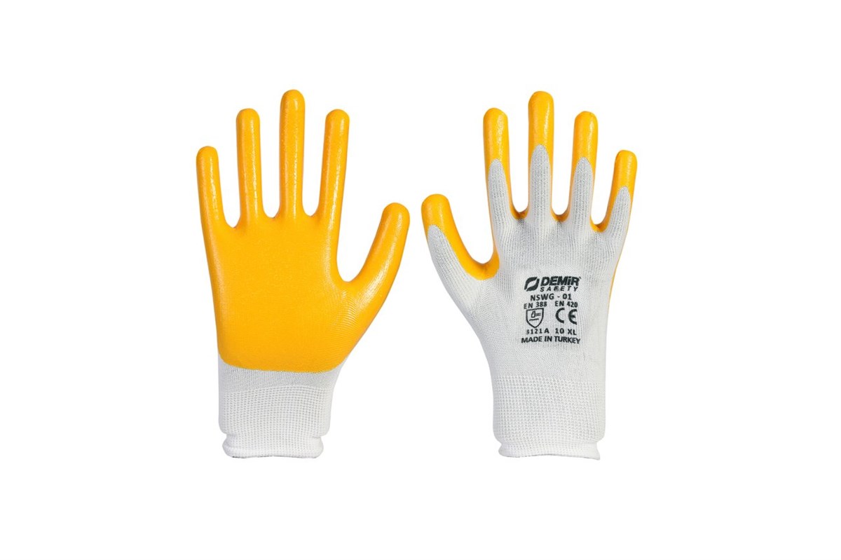 Demir Safety Sarı-Beyaz Polyester Nitril Eldiven No:10