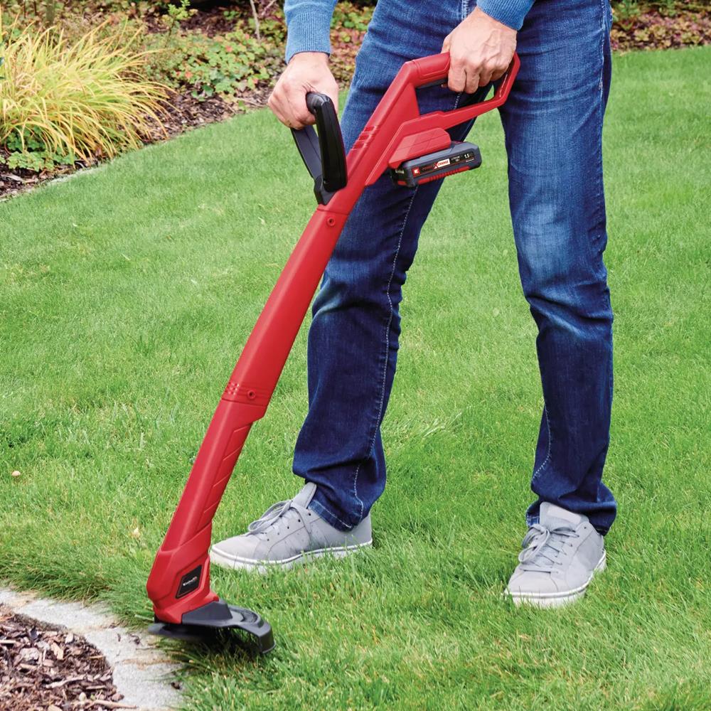 Einhell GE-CT 18/24 Li P Kit, hafif yapısı, kablosuz özgürlüğü ve ergonomik tasarımıyla küçük ve orta büyüklükteki bahçelerde pratik kullanım sağlayan ideal bir kenar kesme