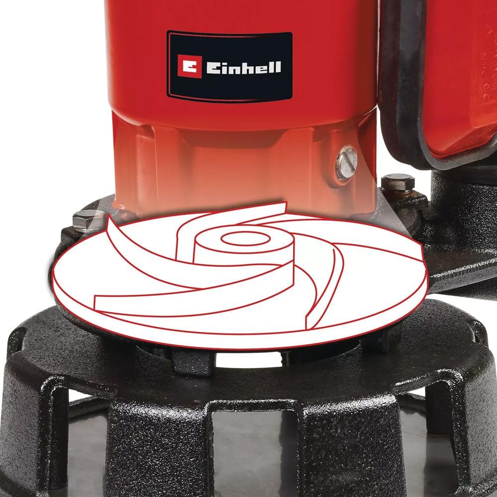 Einhell GE-DP 900 Cut dalgıç pompa, kirli suyun etkin bir şekilde tahliyesi için özel olarak tasarlanmış güçlü bir cihazdır. 900 Watt motor gücü ve 16,500 litre/saat debi kapasitesi