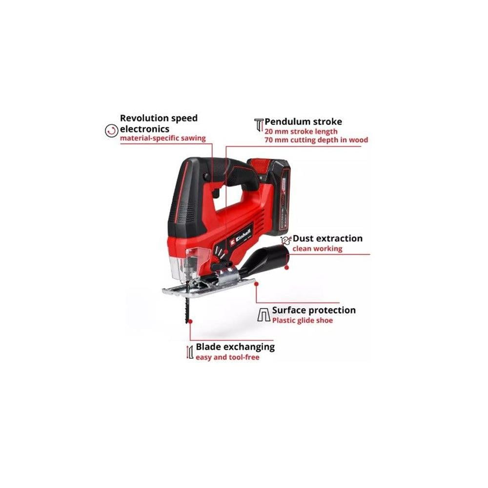 Einhell TC-JS 18/70 Li Akülü Dekupaj Testere, kullanıcı dostu tasarımı ve güçlü performansı ile her türlü kesim işini kolayca yapmanıza yardımcı olur. Akülü yapısı ile