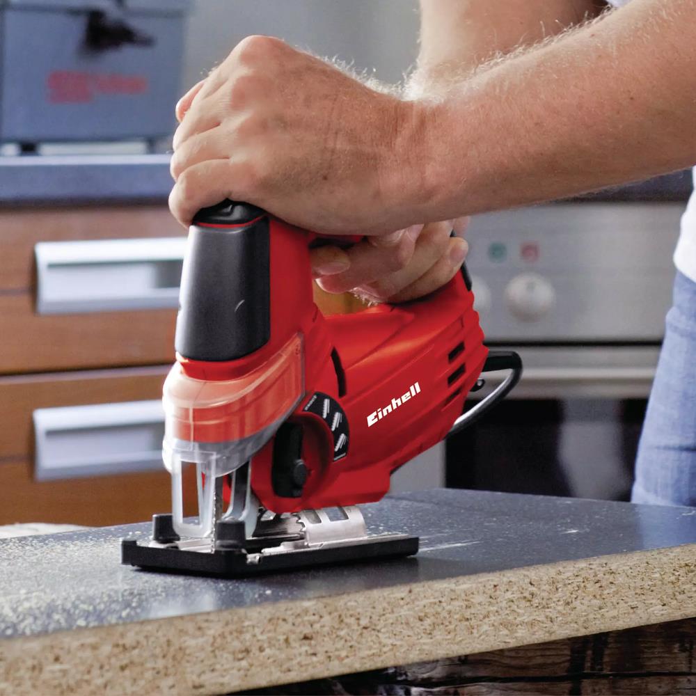 Einhell TC-JS 85 E dekupaj testere, yüksek performans ve hassas kesim kabiliyeti sunan güçlü bir el aletidir. 620 Watt motor gücü ile ahşap, metal ve plastik gibi farklı