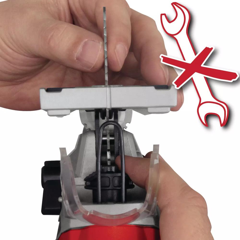 4 kademeli sarkaç fonksiyonu ile kesim verimliliği artırılarak daha hızlı ve düzgün kesimler elde edilir. Aletsiz bıçak değiştirme mekanizması sayesinde testere bıçakları kolayca