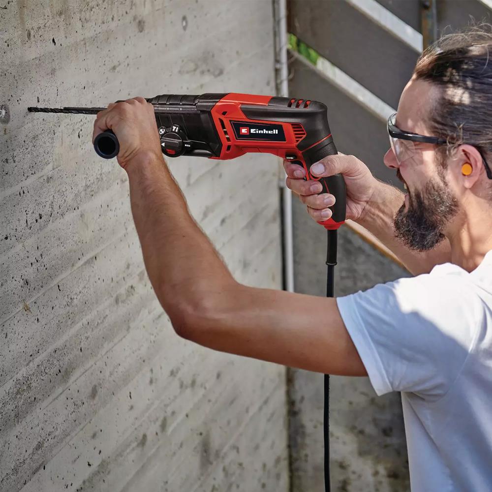 Einhell TC-RH 800 4F kırıcı delici, güçlü motoru ve çok yönlü fonksiyonlarıyla evde, atölyede ve şantiyede kullanılmak üzere tasarlanmış bir elektrikli el aletidir. 800 Watt gücündeki