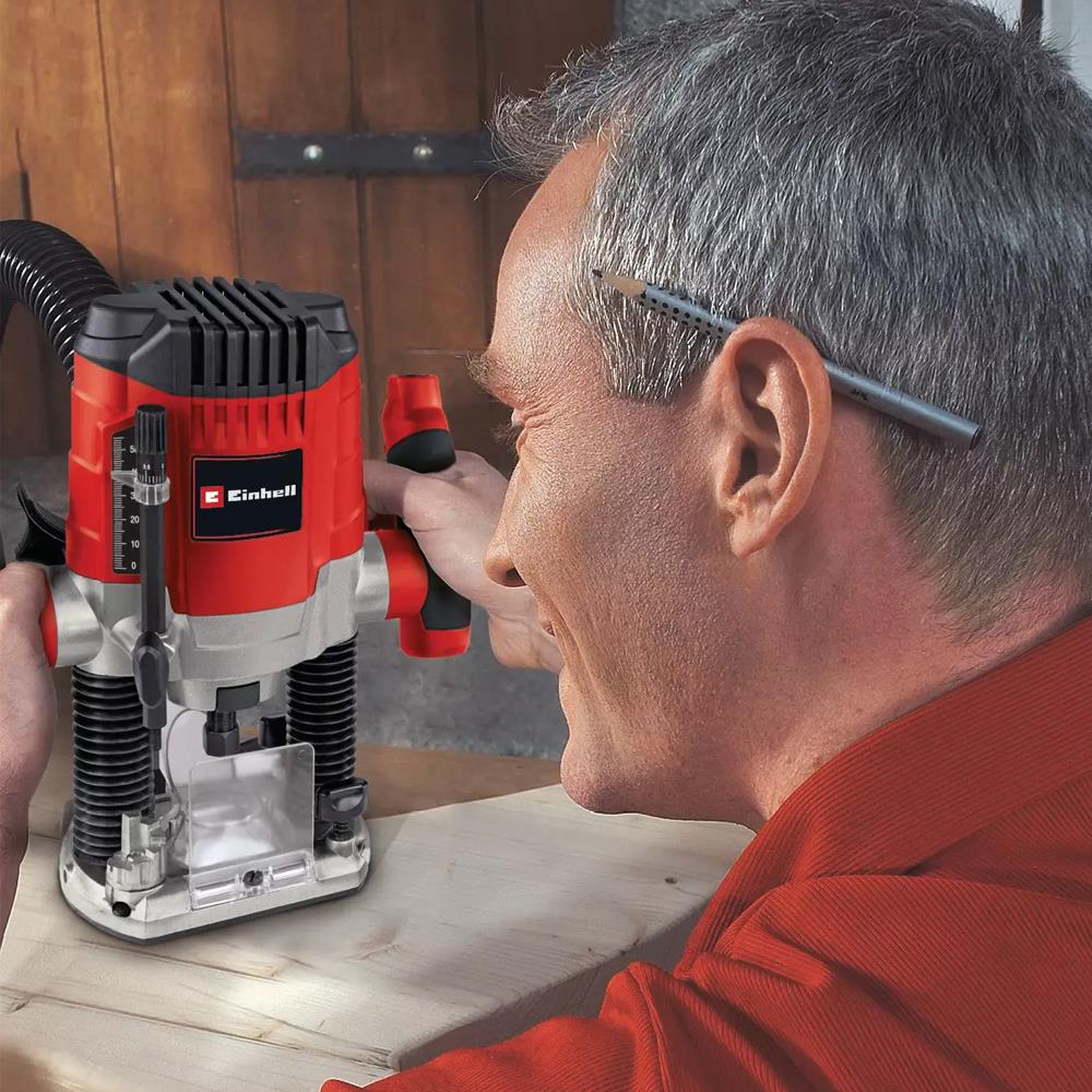 Einhell TC-RO 1155 Kit dik freze, ahşap ve benzeri malzemelerde hassas şekillendirme ve freze işlemleri yapmak için güçlü ve ergonomik bir elektrikli el aletidir. 1150 Watt