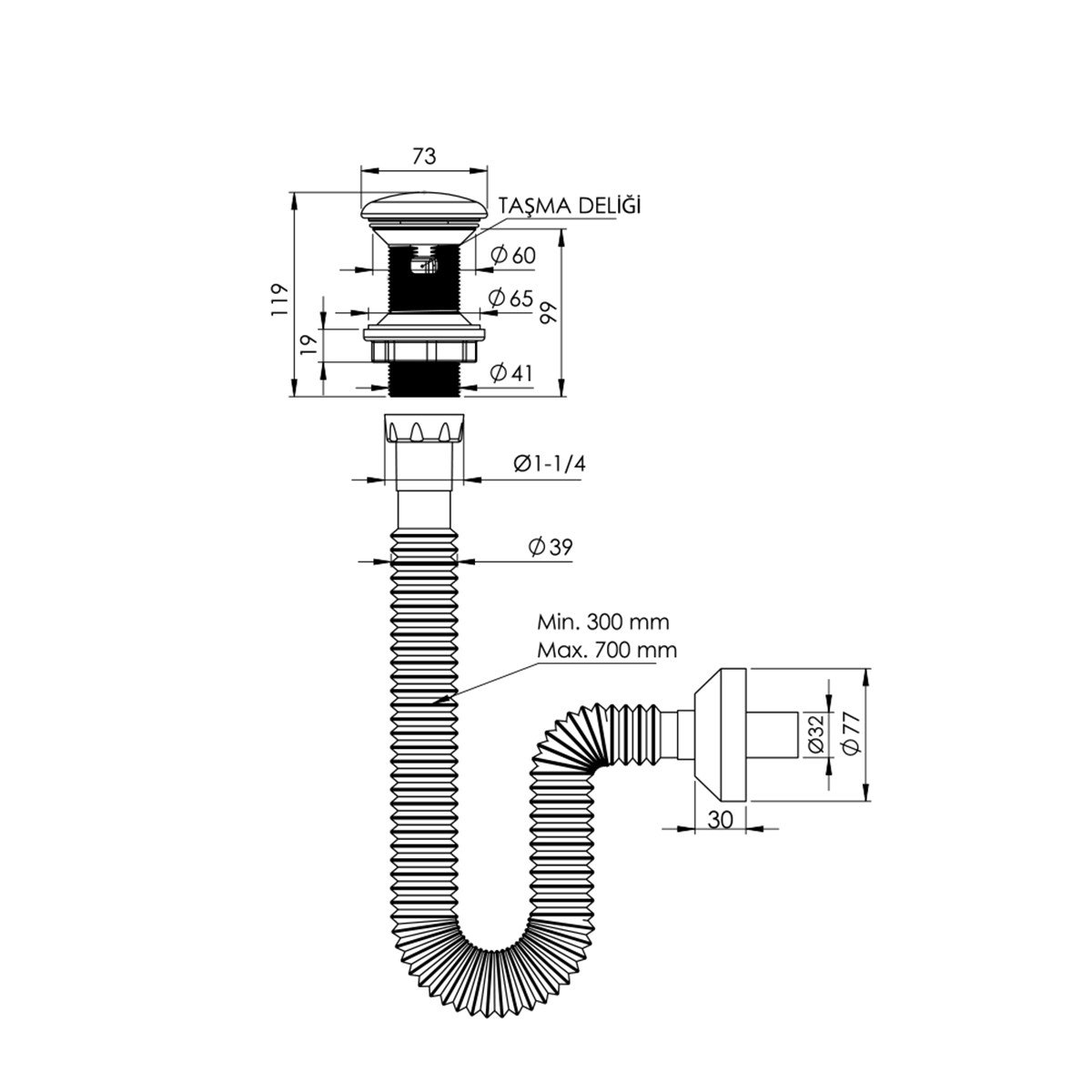 Elixir Pop Up Sifon Seramik Başlıklı Altın ve Körüklü Gider Borusu Taşma Deliksiz
