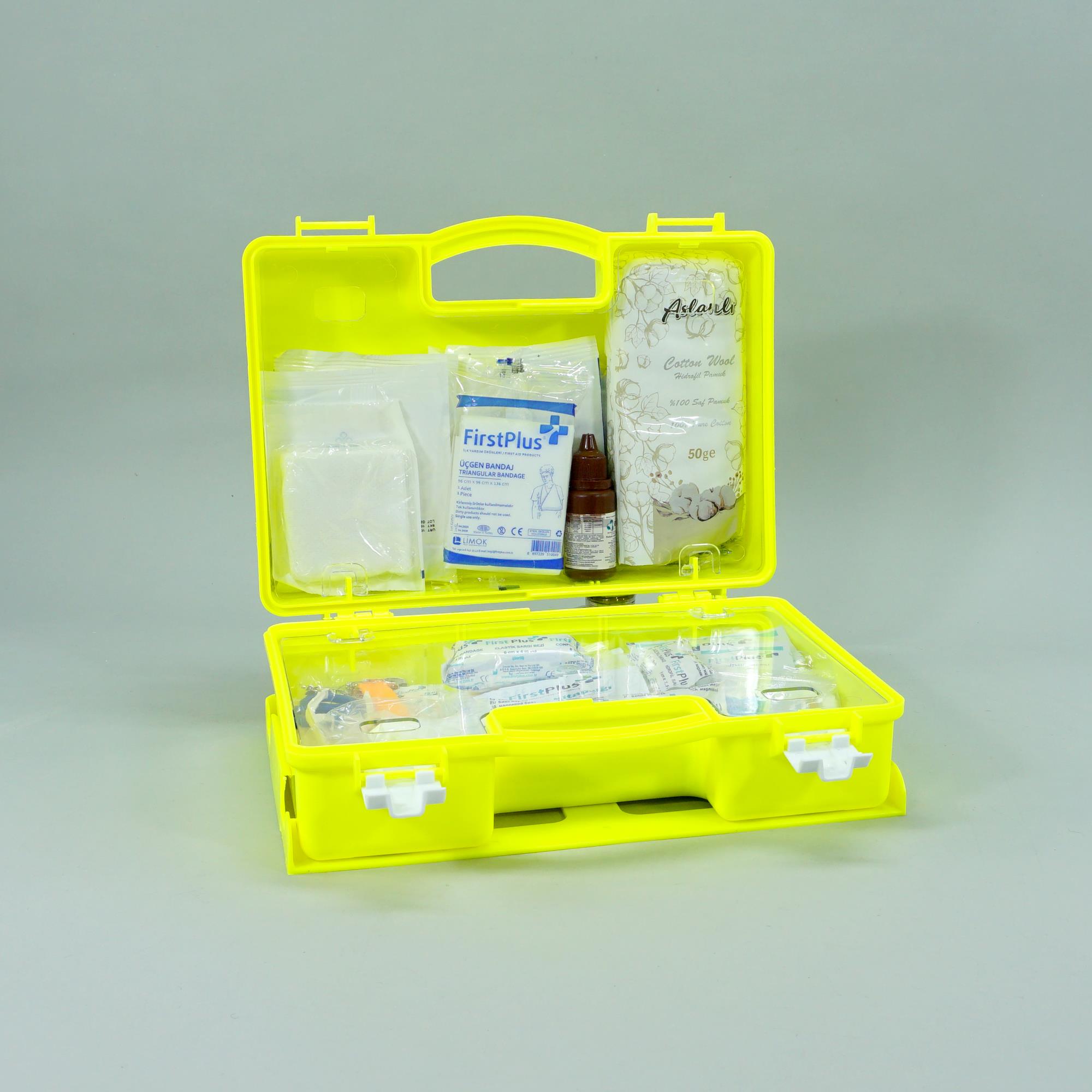- İlk yardım ürünleri sert, sağlam ve dayanıklı ABS plastik malzemeden üretilmiş bir çanta içindedir.