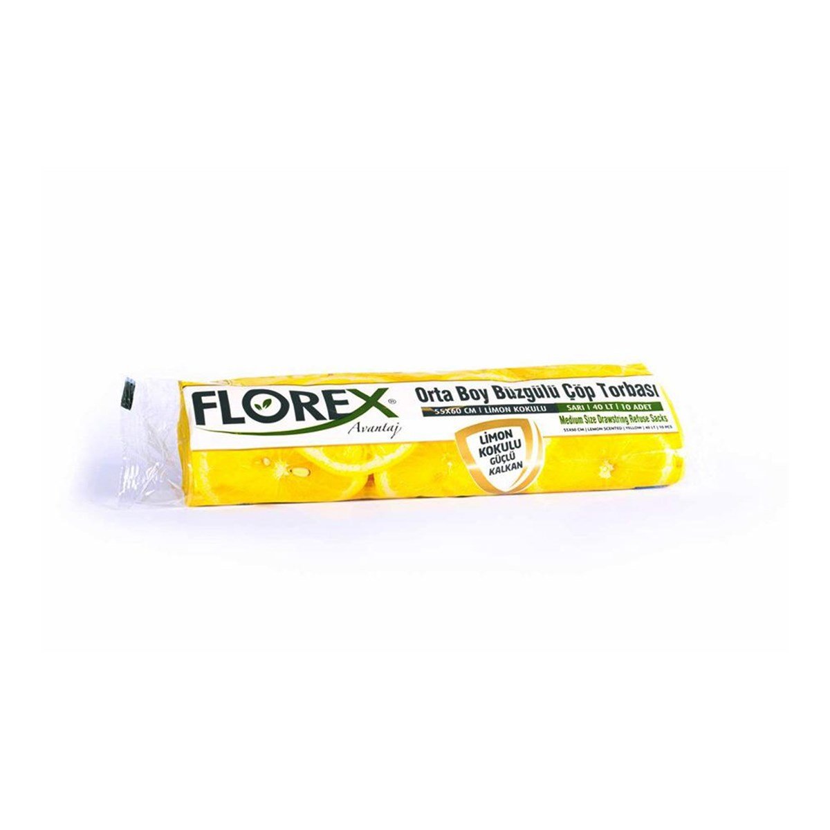 Florex 401 Limon Kokulu Büzgülü Orta Boy Çöp Torbası 55X60Cm 25 Rulo (1 Rulo 10 Adet)