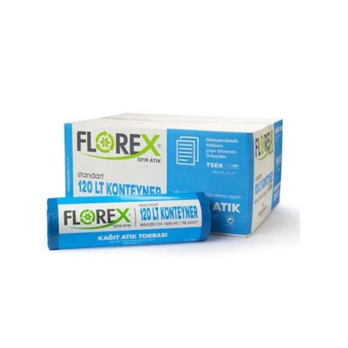 Florex 829 Kağıt Atık Baskılı 120 Lt Konteyner Mavi Çöp Torbası 90X125Cm 10 Rulo (1 Rulo 10 Adet)