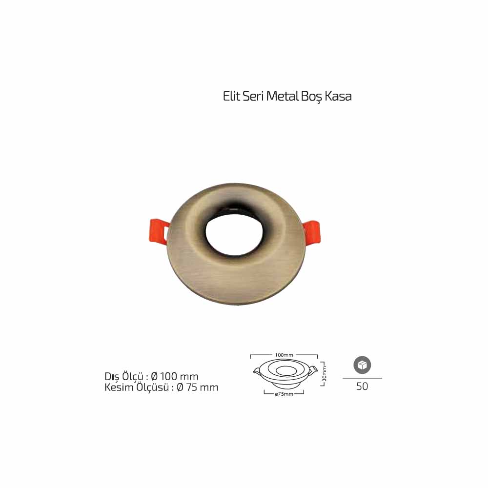 Forlife Elit Metal Boş Spot Kasa Eskitme FL-1901 E, sıva altı spot aydınlatma sistemleri için tasarlanmış dayanıklı ve dekoratif bir spot kasa modelidir. 100 mm dış ölçüsü ve 75 mm kesim çapı sayesinde birçok LED spot ve spot armatür ile uyumlu şekilde kullanılabilir.