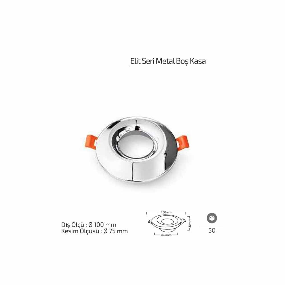 Forlife Elit Metal Boş Spot Kasa Gümüş FL-1901 G, sıva altı spot aydınlatma sistemleri için tasarlanmış dayanıklı ve dekoratif bir spot kasa modelidir. 100 mm dış ölçüsü ve 75 mm kesim çapı sayesinde birçok LED spot ve spot armatür ile uyumlu şekilde kullanılabilir.