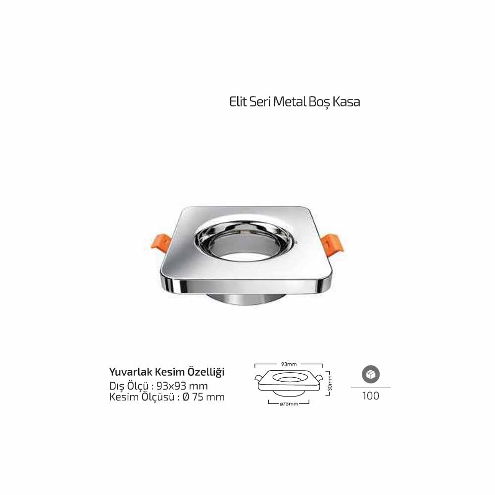 Forlife Elit Metal Boş Spot Kasa Gümüş FL-1903 G, sıva altı spot aydınlatma montajları için tasarlanmış dayanıklı ve estetik bir spot kasa modelidir. 93x93 mm dış ölçüsü ve 75 mm kesim çapı sayesinde birçok LED spot ve spot armatür ile uyumlu şekilde kullanılabilir.