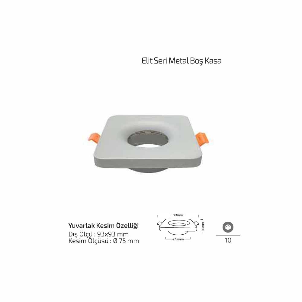Forlife Elit Metal Boş Spot Kasa Mat Gri FL-1903 M, sıva altı spot aydınlatma uygulamaları için tasarlanmış sağlam ve estetik bir spot kasa modelidir. 93x93 mm dış ölçüsü ve 75 mm kesim çapı sayesinde birçok LED spot armatürü ile uyumlu olarak kullanılabilir.