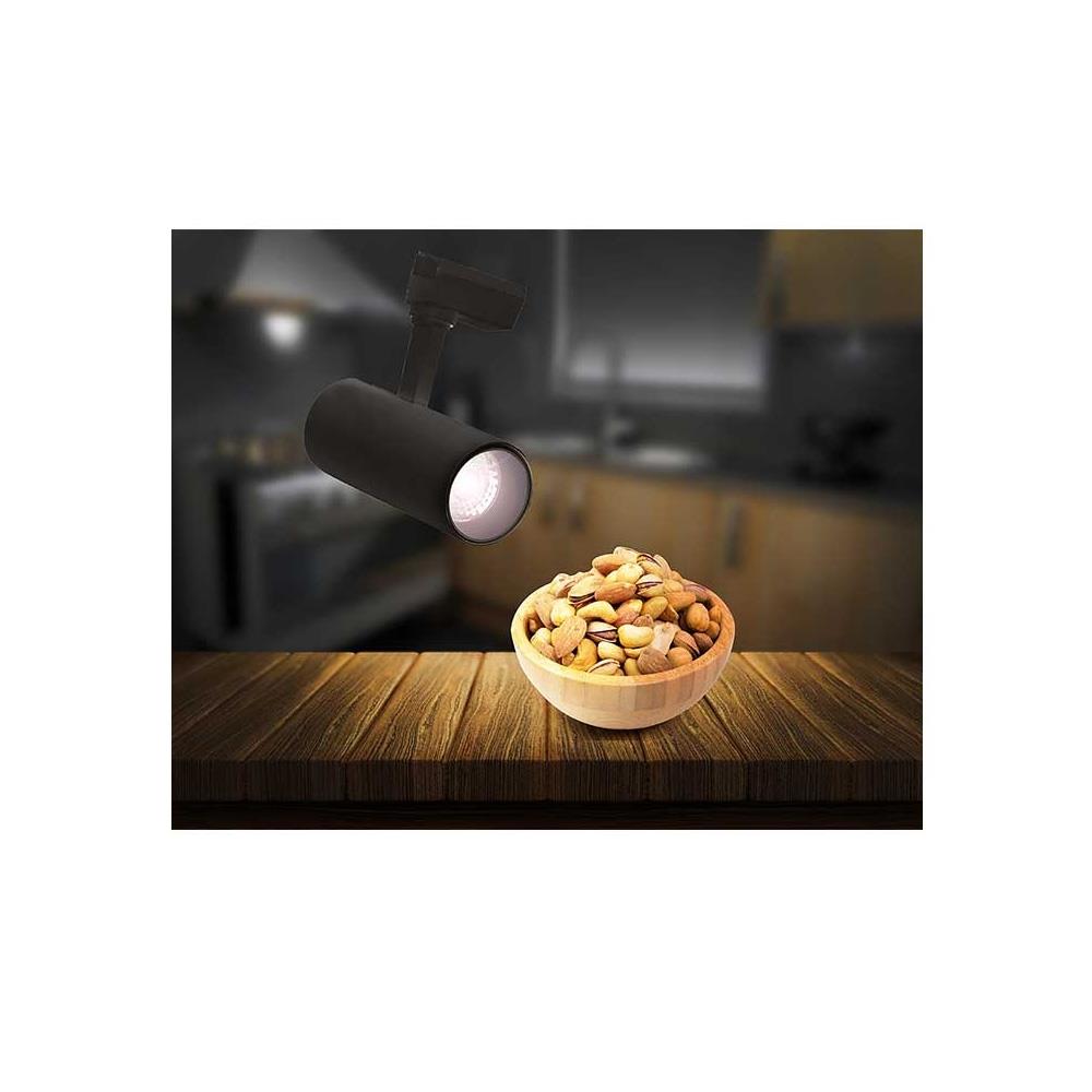 2700 lümende güçlü ışık yayan ray spot armatür, CRI>80 renk verimliliği sunar.