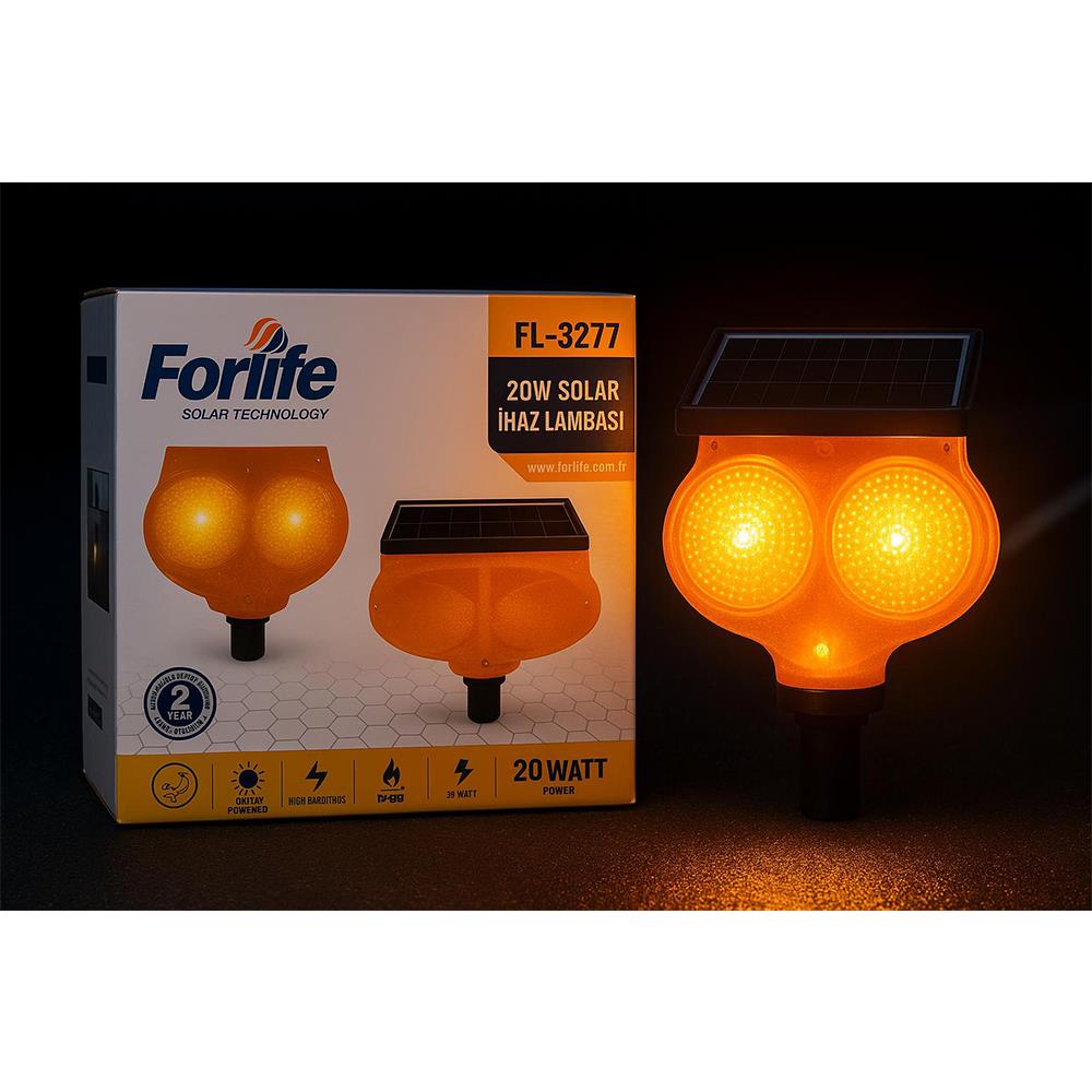 Forlife 20W Solar Delinatör Uyumlu Sarı İkaz Lambası Fl-3277