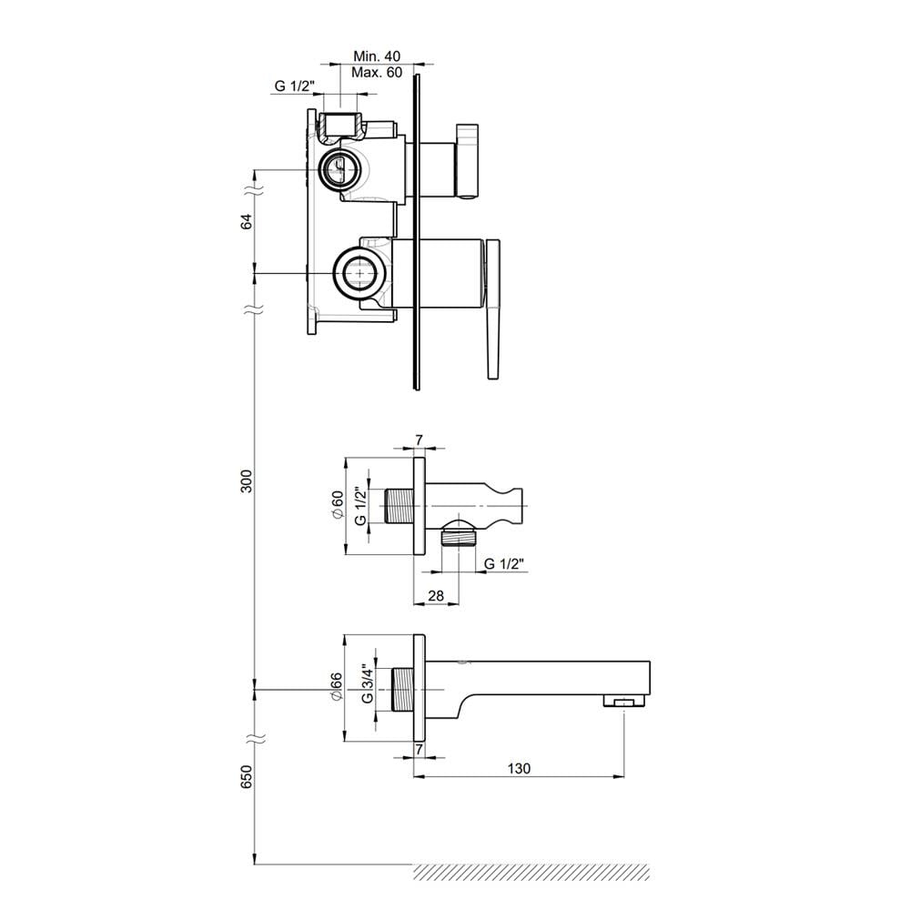 Gpd Aduro Ankastre Banyo Bataryası (3 Yollu Yönlendirici Ve Duş Çıkışı İle) Krom Mca196