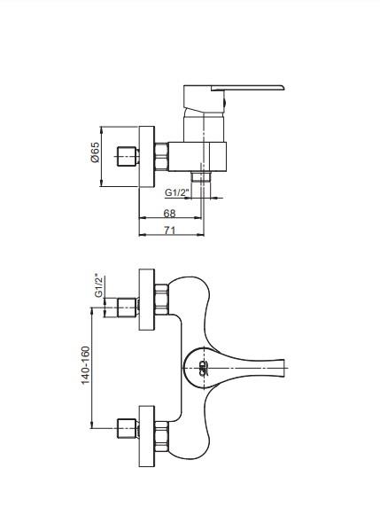 •Duş çıkış uzunluğu 68 mm