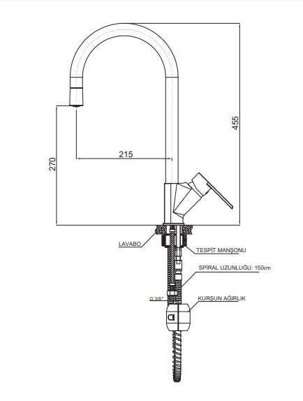 •Çıkış ucu yüksekliği 270 mm