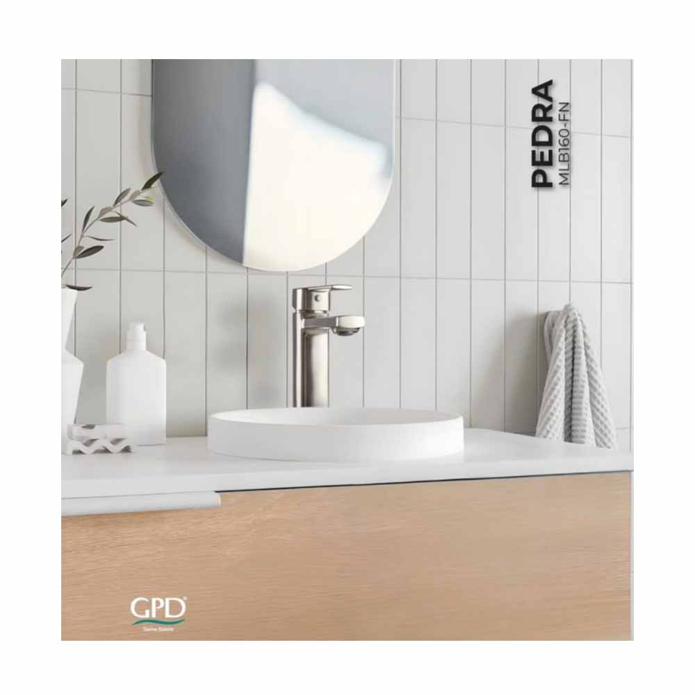 Pedra batarya serisinin MLB160-FN modeli, sade ama dikkat çekici bir tasarıma sahiptir. Yüksek kalite pirinç gövdesi ile uzun yıllar sorunsuz bir kullanım vadeder. Tek kumandalı yapısı sayesinde sıcak-soğuk su ayarı kolaylıkla yapılabilir. Lavabo bataryası olarak ideal ölçülere sahip olan bu model, hem klasik hem modern lavabo tasarımlarına rahatça entegre edilebilir. Fırçalı nikel kaplaması ile banyoya zarif bir dokunuş katar. GPD’nin kalite anlayışı ile üretilen bu model, dayanıklılığı ve şıklığı bir arada sunar.